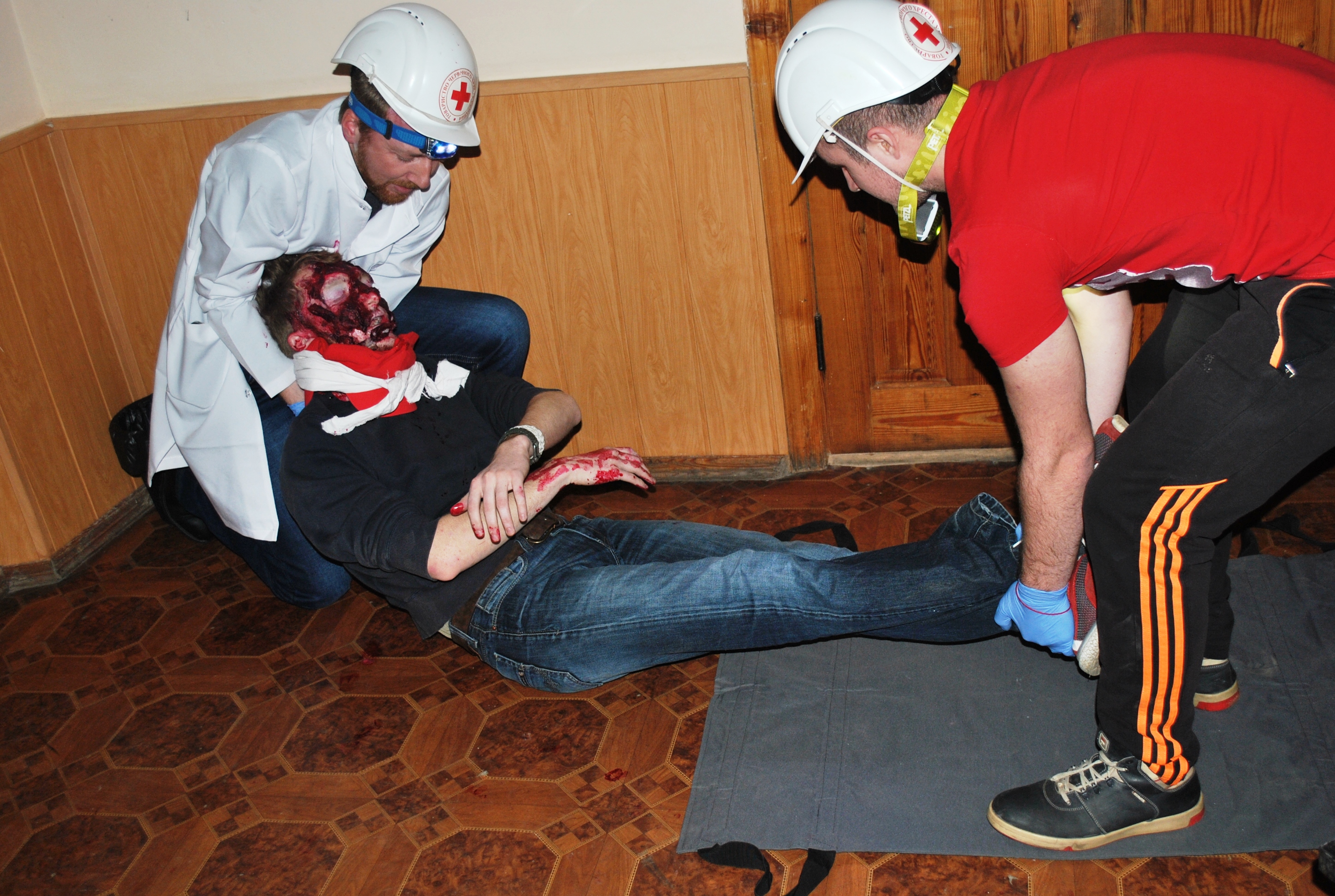 Окремою родзинкою курсів стала стресова підготовка слухачів. Інструктори разом з помічниками інсценували ситуації масового ураження із застосуванням гриму, муляжів та манекенів. За умовами, необхідно було в обмежений проміжок часу організувати надання допомоги постраждалим в різних станах і з різними видами уражень.