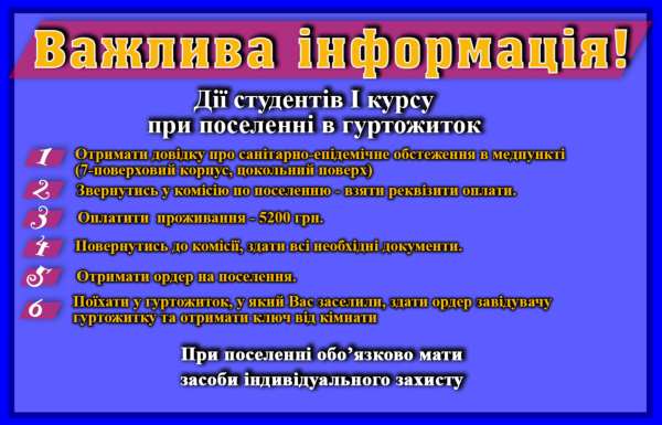 Інформація про поселення у гуртожитки ЦДПУ ім. В.Винниченка