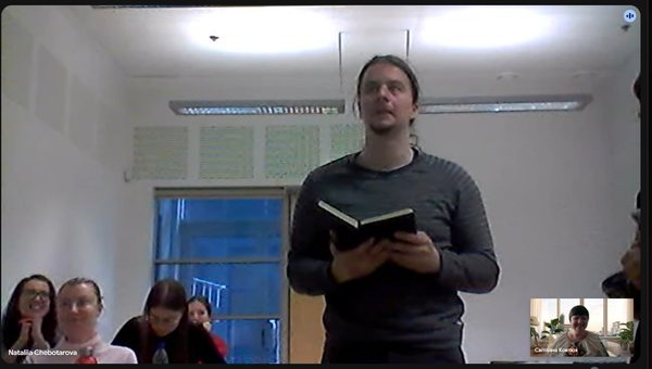 Наприкінці зустрічі естонські студенти висловили позитивні враження від прослуханої лекції та поставили запитання. Наприклад, студент Валері сказав, що має українське коріння, у його родині залишився спогад про одну з бабусь на ім’я Єля. Чи означає це, що її повне найменування Олена. С.Л.Ковтюх відповіла ствердно, ще й надіслала відповідні світлини зі «Словника українських імен» І. І. Трійняка. Мабуть, усі здогадалися, що спровокувала це запитання розповідь про кропивницький проєкт «Баба Єлька», дві очільниці якого навчалися в нашому університеті – Світлана Листюк (кандидат педагогічних наук, ще й гризла граніт науки в Гарварді) та Інна Тільнова (кандидат філологічних наук, студентка й аспірантка С.Л.Ковтюх). Олексія зацікавив український слід у космонавтиці загалом та в американській астронавтиці зокрема, свій короткий виступ естонський юнак завершив словами «Слава Україні!». Катрена й Ірина натхненно описали той емоційний заряд, який вони отримали від лекції. У кінці рефлексій виступив другий Олексій, який зворушливо сказав, що українська мова – «дуже краща». Приємно, що молоді люди, які почали вчити нашу мову або з вересня, або щойно в другому семестрі, говорять старанно, вдумливо, майже без помилок, з мінімальним акцентом, і це естонці!