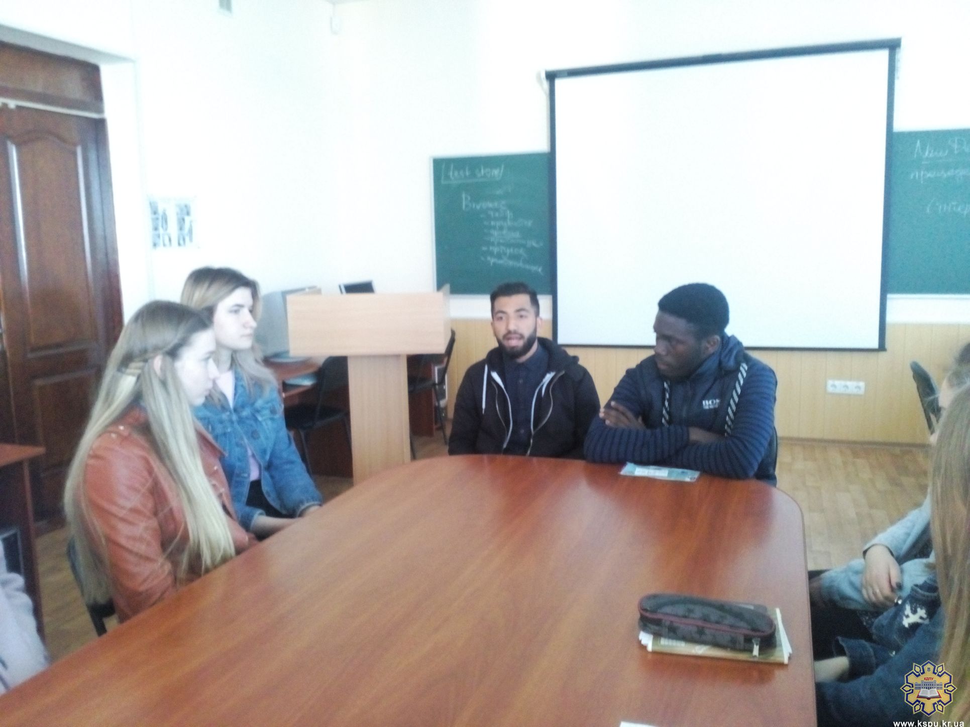 27 квітня 2017 року до факультету іноземних мов для зустрічі зі студентами завітали двоє іноземців з Донецького медичного університету. Батьківщина одного зі студентів-іноземців Шрі-Ланка, інший – з Африки. Вони розповіли про їх цікаве та повне насичених моментів життя, величезну кількість подорожей до різних країн та проживання і навчання в Англії та Америці. Така інформація була цікавою та актуальною для молоді, що навчається на факультеті іноземних мов. Особливо студентів зацікавило питання, що стосується життя та навчання в Англії, адже отримати освіту в цій країні є мрією для багатьох. По словам іноземців потрапити до Англії важко, але можливо. Головне - працювати над собою, чітко бачити мету і тоді нічого не зможе завадити досягнути своєї цілі.