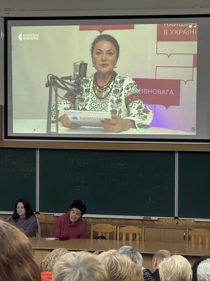 Голосом, який об’єднав усіх учасників по всій країні та за її межами, стала Народна артистка України Наталія Сумська. Її проникливе та виважене читання тексту, сповнене глибокого емоційного забарвлення, допомогло викладачам та здобувачам освіти максимально зануритися в зміст диктанту та уважно фіксувати кожне слово, розділовий знак і стилістичний нюанс.