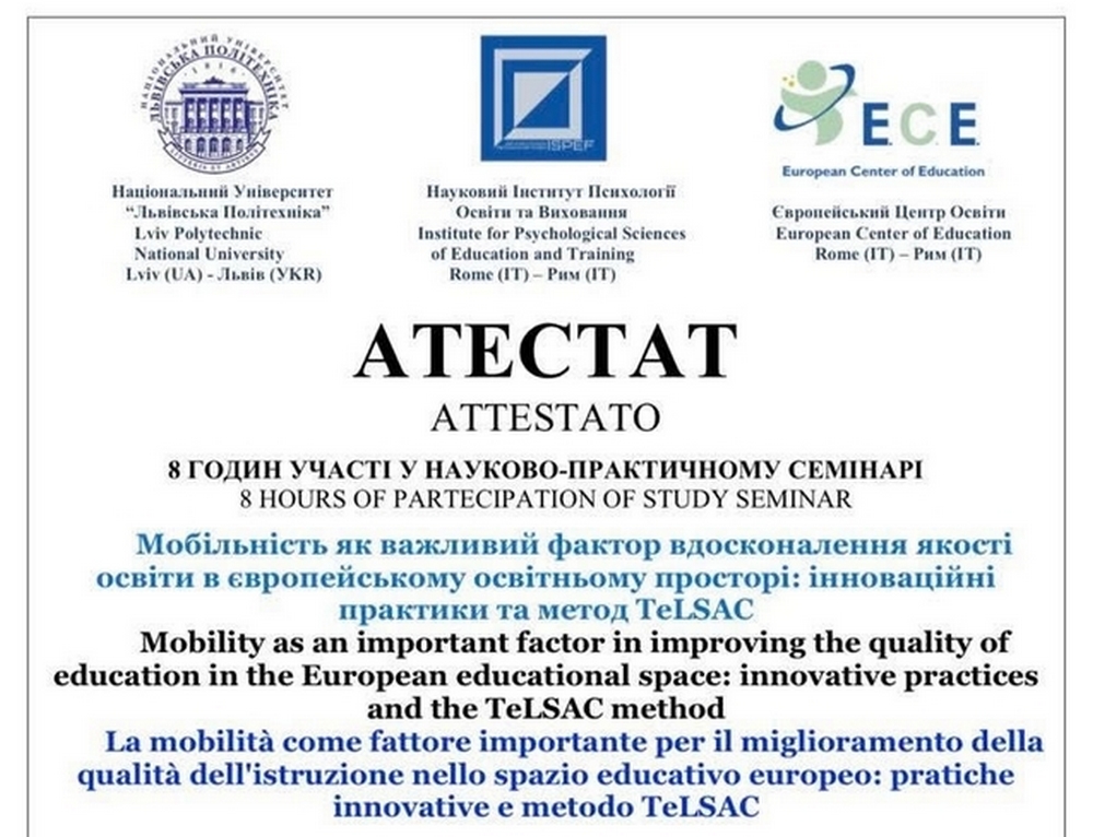 Члени кафедри спеціальної освіти, факультету Освітніх наук Центральноукраїнського державного університету імені Володимира Винниченка професор Тетяна Окольнича та доцент Долорес Завітренко взяли участь У НАУКОВО-ПРАКТИЧНОМУ СЕМІНАРІ «Мобільність як важливий фактор вдосконалення якості освіти в європейському освітньому просторі: інноваційні практики та метод TeLSAC».