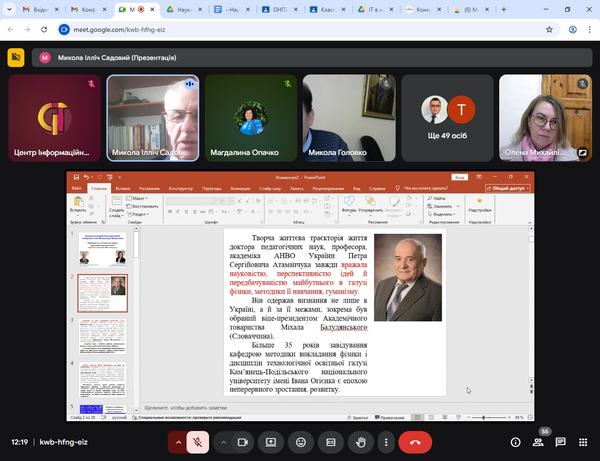 16 жовтня 2025 року викладачі та студенти кафедри інформаційних та цифрових технологій долучилися до Міжнародної науково-методичної інтернет-конференції «Методологічне забезпечення підготовки фахівця природничо-математичного напряму в умовах STEM-освіти». Активними учасниками конференції стали д.пед.н., проф. М.І.Садовий, д.пед.н., проф. О.М.Трифонова, к.пед.н. Д.В.Соменко, а також студенти спеціальностей Професійна освіта (Цифрові технології) та Середня освіта (Інформатика).