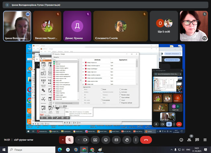 31 жовтня відкрите заняття з дисципліни «Інтелектуальний аналіз даних» для студентів групи КН23Б освітньо-професійної програми «Комп’ютерні науки» провела доцент кафедри інформаційних та цифрових технологійІрина Лупан. На занятті були присутні завідувачка кафедри інформаційних та цифрових технологій, професор Олена Трифонова, доцент кафедри Ольга Рєзіна та старший викладач Дмитро Соменко.