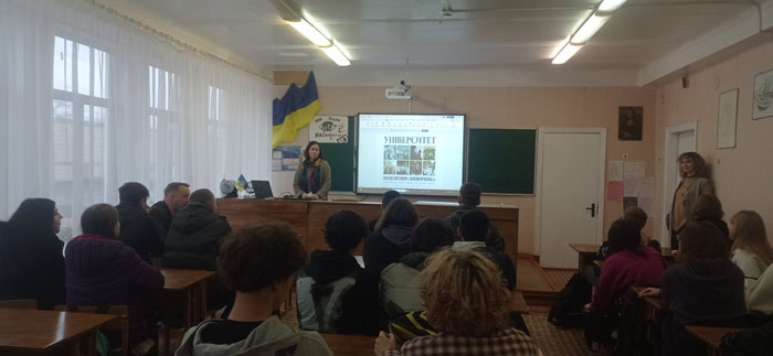 Під час спілкування з учнівською аудиторією доцент кафедри Інна Позднякова ознайомила старшокласників зі структурою та освітніми можливостями ЦДУ ім. В. Винниченка, розповіла про переваги навчання у виші, озвучила перелік спеціальностей і освітніх програм, які пропонує Університет.