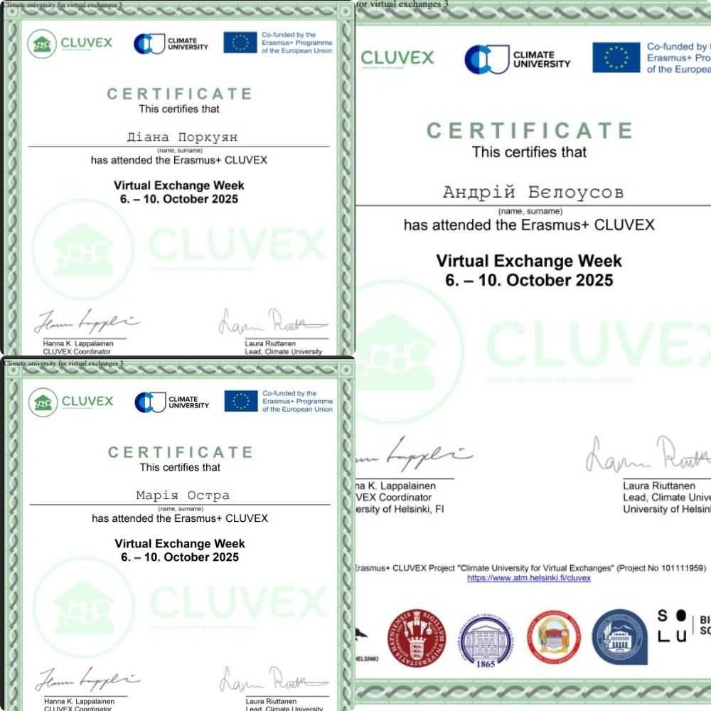 З 6 по 10 жовтня 2025 року відбувся третій тиждень віртуальних обмінів у межах проєкту CLUVEX Європейської програми Erasmus+. Це мультидисциплінарний міжнародний онлайн-тиждень студентських обмінів, до якого долучилися понад 300 студентів з Данії, України, Вірменії, Фінляндії та інших країн Європи та Східного партнерства.
