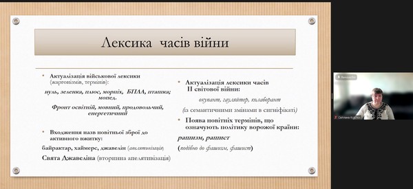 Непідробний інтерес в учасників викликали доповіді доцента кафедри української філології та журналістики О. І. Крижанівської «До проблеми формування свідомої україномовної особистості за техногенно-воєнних викликів» та доцента, завідувача нашої кафедри О. Л. Кирилюк «Мова російсько-української війни: словотвірні та семантичні особливості».