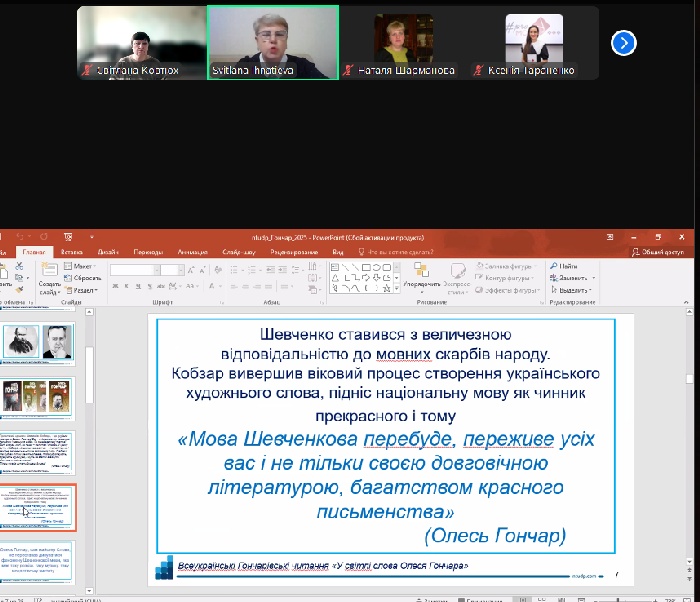 Професор С. Л. Ковтюх виступила на пленарному засіданні Всеукраїнських Гончарівських читань