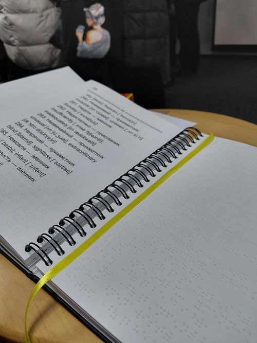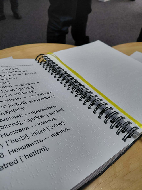 Упродовж лютого в приміщенні Обласної універсальної наукової бібліотеки ім. Д. І. Чижевського відбулася низка знакових подій, до яких колектив факультету української філології, іноземних мов та соціальних комунікацій не міг залишитися байдужим. У присутності людей із порушенням зору, тифлопедагогів, міських освітян, бібліотекарів і небайдужої громадськості Ярослав Сидоренко — випускник колишнього факультету іноземних мов КДПУ ім. В. Винниченка, а нині активний і харизматичний учитель, перекладач та ініціатор інноваційних освітніх проєктів — презентував унікальний у своєму роді «Українсько-англійський словник» шрифтом Брайля та соціальний освітній серіал «5 кроків до безбар’єрності: як допомогти правильно».