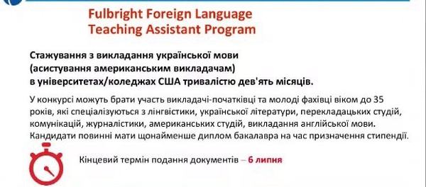 Пані Інна докладно пояснила всі вимоги, критерії та документи, необхідні для участі в конкурсі. Основною вимогою є досконале знання англійської мови, яке має бути підтверджене міжнародним іспитом TOEFL iBT.