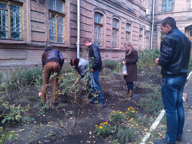 Першокурсники Веремієнко Микола, Горбунов Богдан, Іванов Микола, Кабаєва Анастасія, Перепічай Владислав та студентка 3 курсу Палій Юлія 30 вересня взяли активну участь у збагаченні університетської клумби. Маємо надію, що ця традиція буде продовжуватися ще багато років, радуючи око не лише студентів та викладачів університету, а й жителів міста Кіровограда.