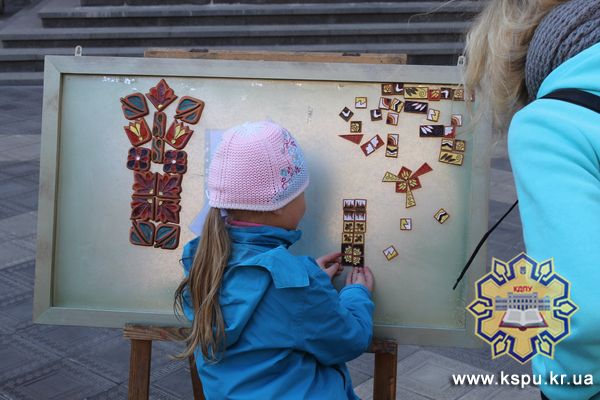 Для дітей, молоді та дорослих були проведені майстер-класи викладачами-художниками та їхніми учнями. Неабияким успіхом користувалась майстерня «Кераміка», під керівництвом старшого викладача кафедри образотворчого мистецтва та дизайну Л.О. Кулініч. Всі учасники спробували себе не лише у декоративному ліпленні, але й у можливості створювати власні пазлово-керамічні композиції. Під керівництвом члена Спілки художників України, к.п.н. О.А. Пунгіної, всі бажаючі вчилися писати натюрморт з натури на полотнах, акриловими фарбами. У майстерні «Графіка», під керівництвом члена Спілки художників України, В.М.Давидова ознайомлювалися з процесом створення гравюри. У напрямку декоративно-прикладного мистецтва працювали творчі майстерні з «Малюнку на склі» (керівник к.п.н. Малежик Ю.М.) та «Декоративного малювання» (керівник член Спілки народних майстрів України Гарбузенко Л.В). Для найменших відвідувачів заходу віком від 2 років, працювала креативна майстерня під керівництвом викладача К.В.Гусєвої, де засобом пальчикового малювання діти поринали в світ імпресіонізму.