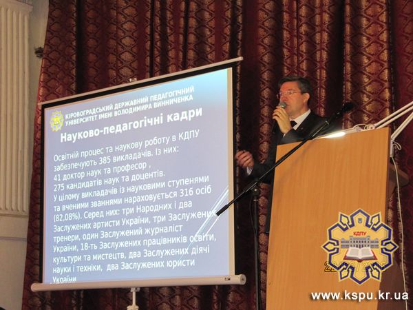 22 квітня у приміщенні актової зали університету відбулося пленарне засідання звітної наукової конференції Кіровоградського державного педагогічного університету імені Володимира Винниченка за 2015 рік. Відкрив засідання ректор університету, доктор філологічних наук, професор О. А. Семенюк. За підсумками науково-дослідної діяльності вручені почесні грамоти, подяки та дипломи.