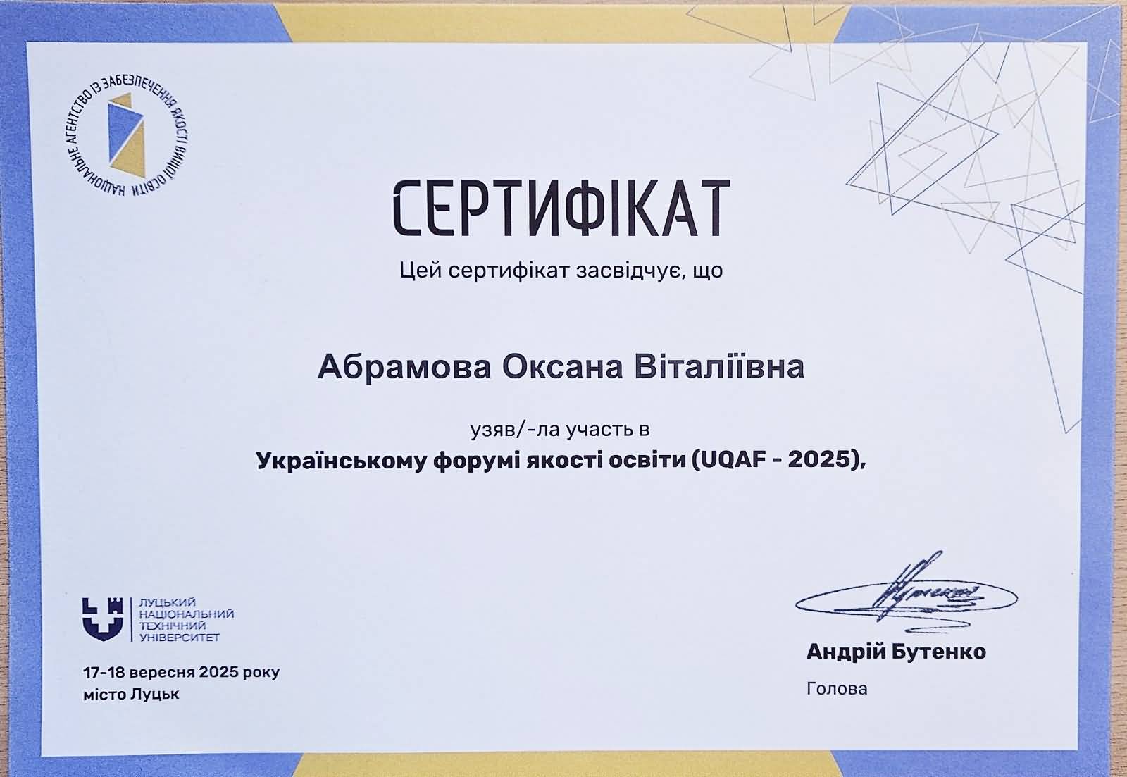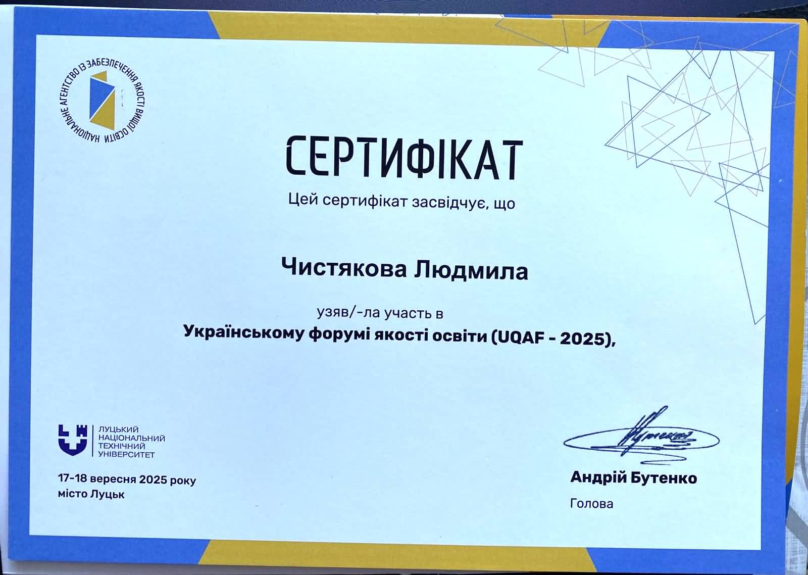 17-18 вересня 2025 року у місті Луцьку на базі Луцького національного технічного університету відбувся Український форум якості освіти (UQAF-2025) – одна з головних національних платформ для обговорення актуальних викликів, практик і стратегій забезпечення якості вищої освіти.