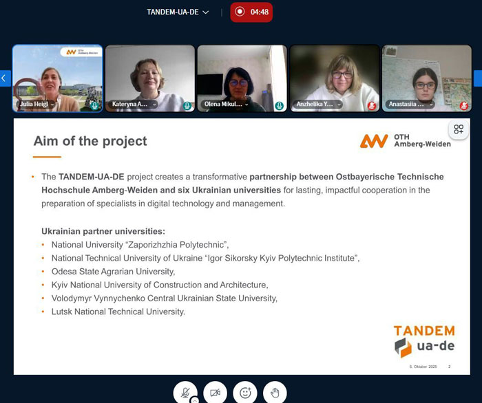 6 жовтня 2025 року відбулася перша організаційна зустріч у межах міжнародного освітнього проєкту TANDEM-UA-DE, якою офіційно розпочато зимовий семестр 2025–2026 навчального року.