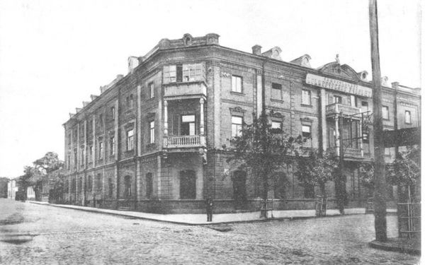 Будинок, в якому розміщувалося Єлисаветградське комерційне училище, засноване Василем Харцієвим в 1908 році, на розі вулиць Шульгіних та Дворцової