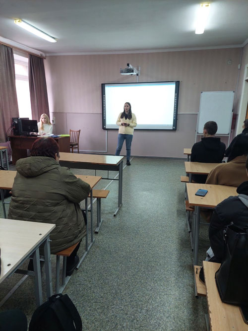 Під час заходу заступниця директора Юридичної клініки Марія Скрипник ознайомила учасників із поняттям обмеження конституційних прав у період воєнного стану та роз’яснила механізми їх захисту. Пані Марія підкреслила, що кожен громадянин має право звернутись за безоплатною правовою допомогою та отримати консультацію з правових питань. Студенти коледжу активно долучалися до обговорення порушених питань, ставили актуальні запитання спікерці та брали участь у дискусії щодо сучасних викликів у сфері захисту прав людини. На завершення заходу для студентів було організовано інтелектуальну гру «Брейн-ринг», присвячену перевірці знань конституційних прав і обов’язків людини та громадянина.